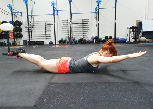 Arch holds, when doing the arch holds your on your stomach and you raise your arms and feet in the air, putting your body into an ‘arch’ position. So pretty much your body is the in opposite position to a dish holds; however everything else is the same. You want to maintain tightness from the tips of your fingers to your toes and you want to keep your feet together by squeezing your glutes.